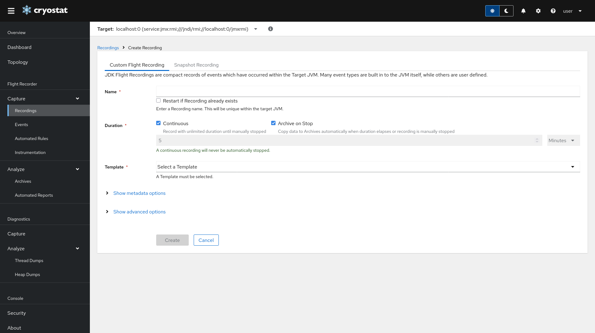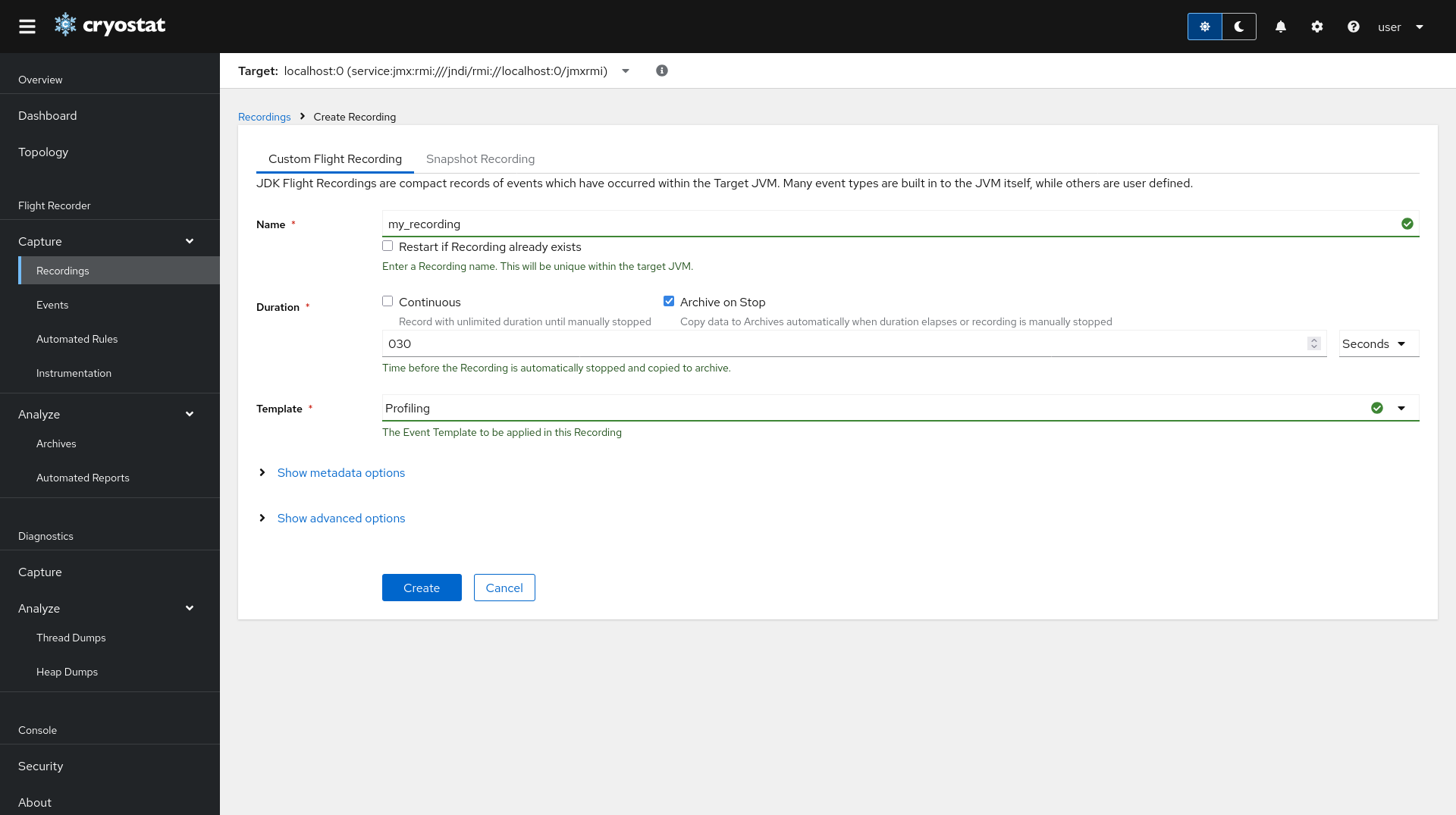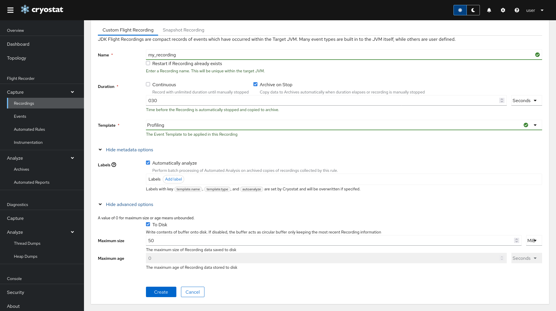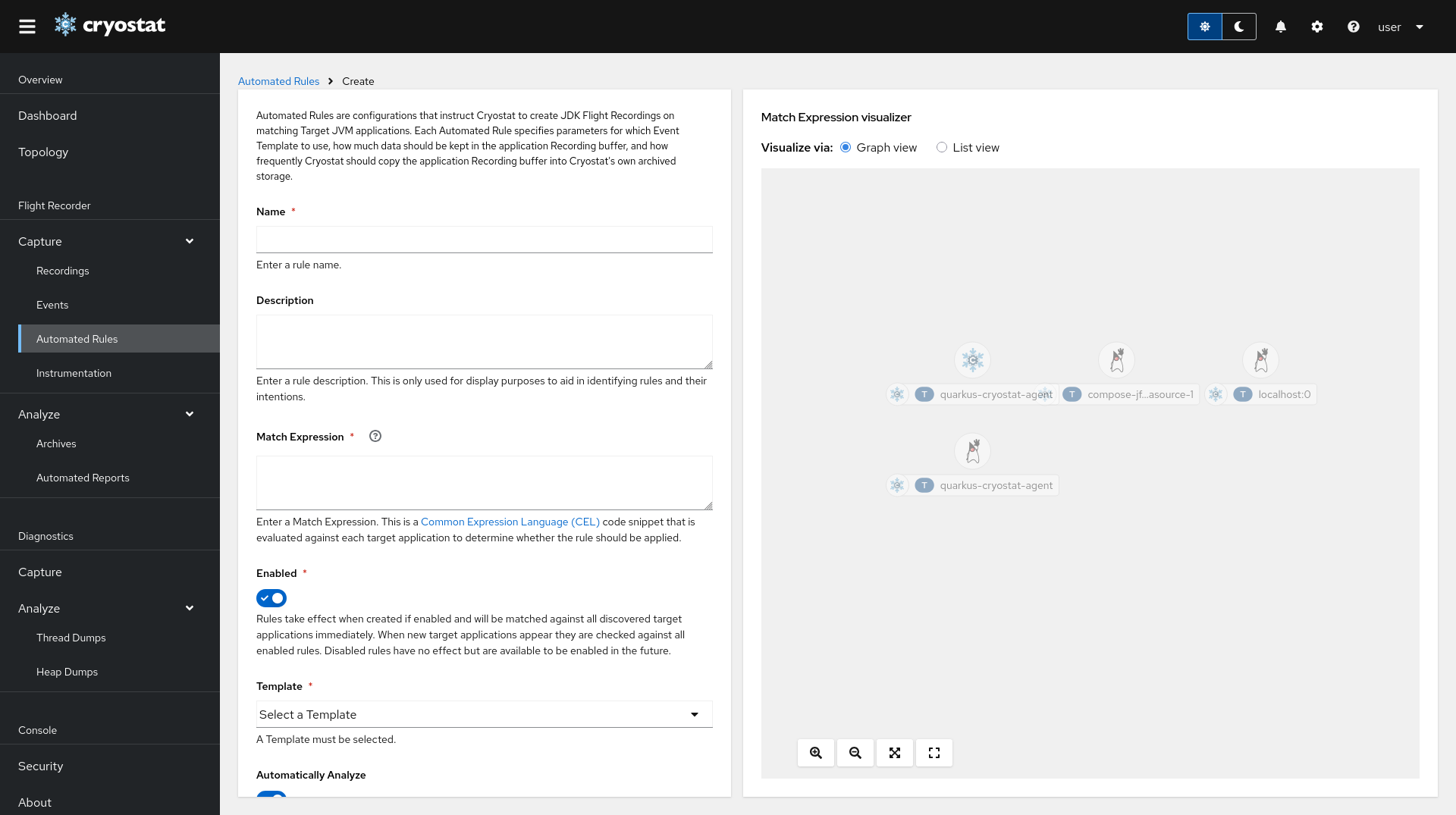 Automated Rules are configurations that instruct Cryostat to create JDKFlight Recordings on matching