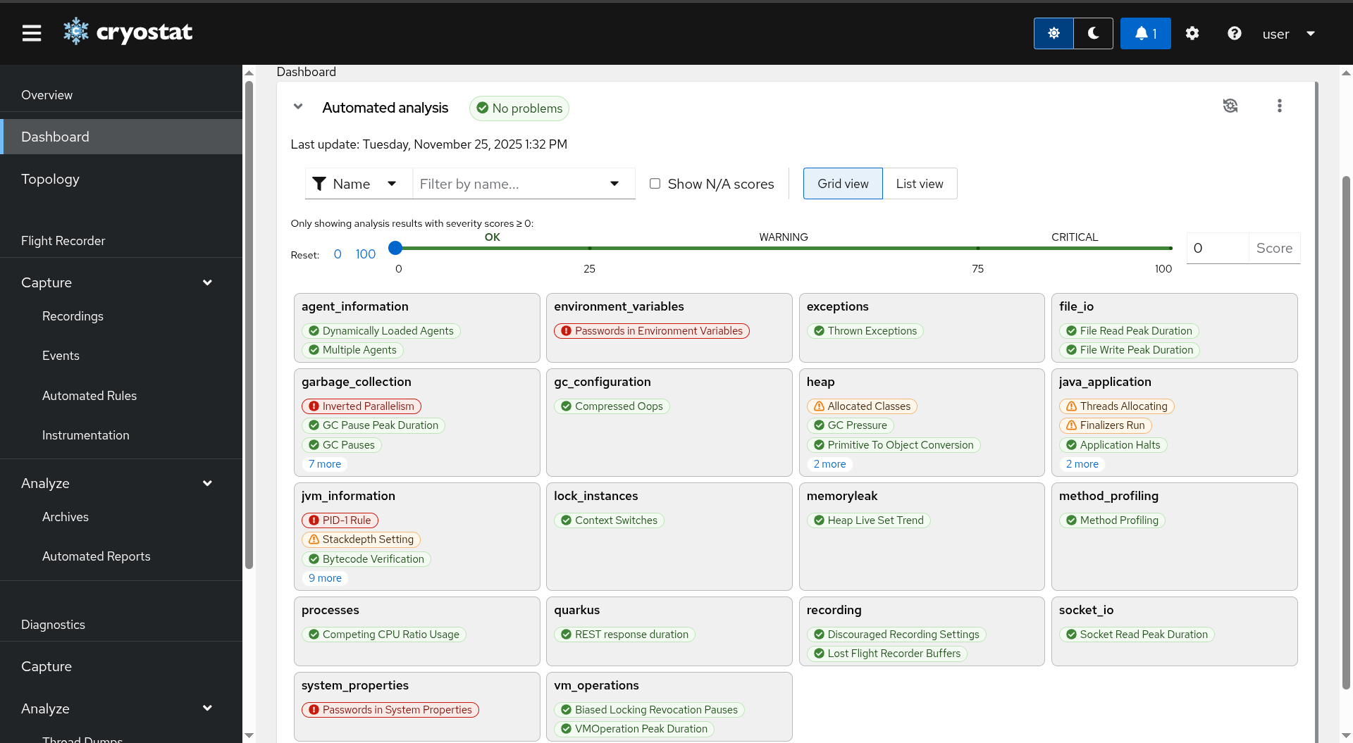 Once you've set up your Automated Rules, Cryostat will continuously monitor applications that meet the criteria defined in those rules, with no need to restart or redeploy those applications.