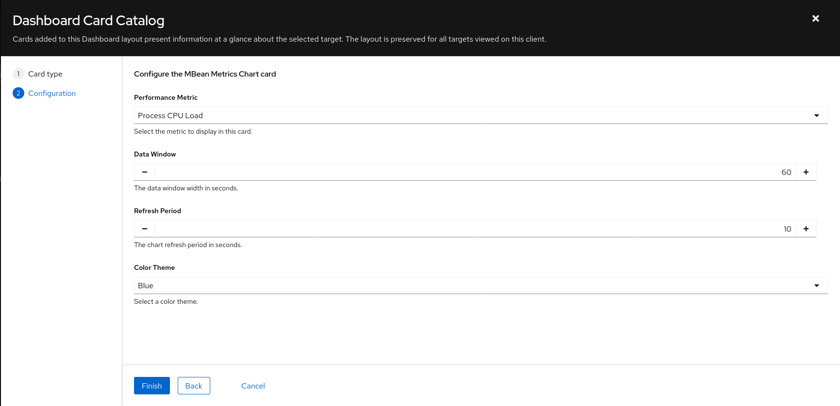Add the MBean Metrics ChartCardClick on the MBean Metrics Chartcard for a preview.