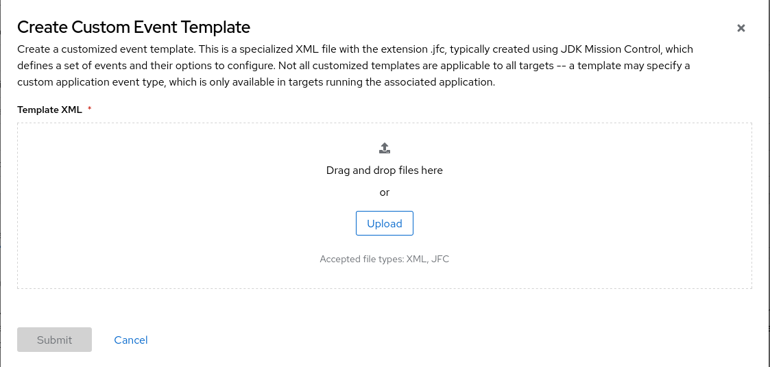 The Expression also has a jfrEventTypeIds function in global scope, which takes the target object as a parameter and returns a list of strings corresponding to the Flight Recorder Event Types registered in the targetJVM.
