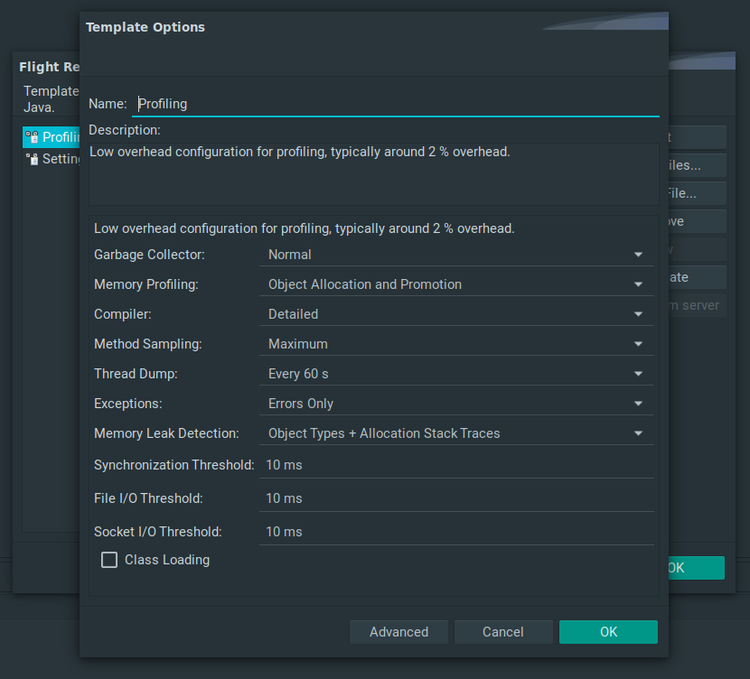 Maximum Size: the (approximate) maximum size of Flight Recorder data which should be held in the Active Recording buffer by the JVM. If set to 0 the buffer size will be unlimited. Once the buffer is full, Flight Recorder will discard the oldest data to make space for new data.