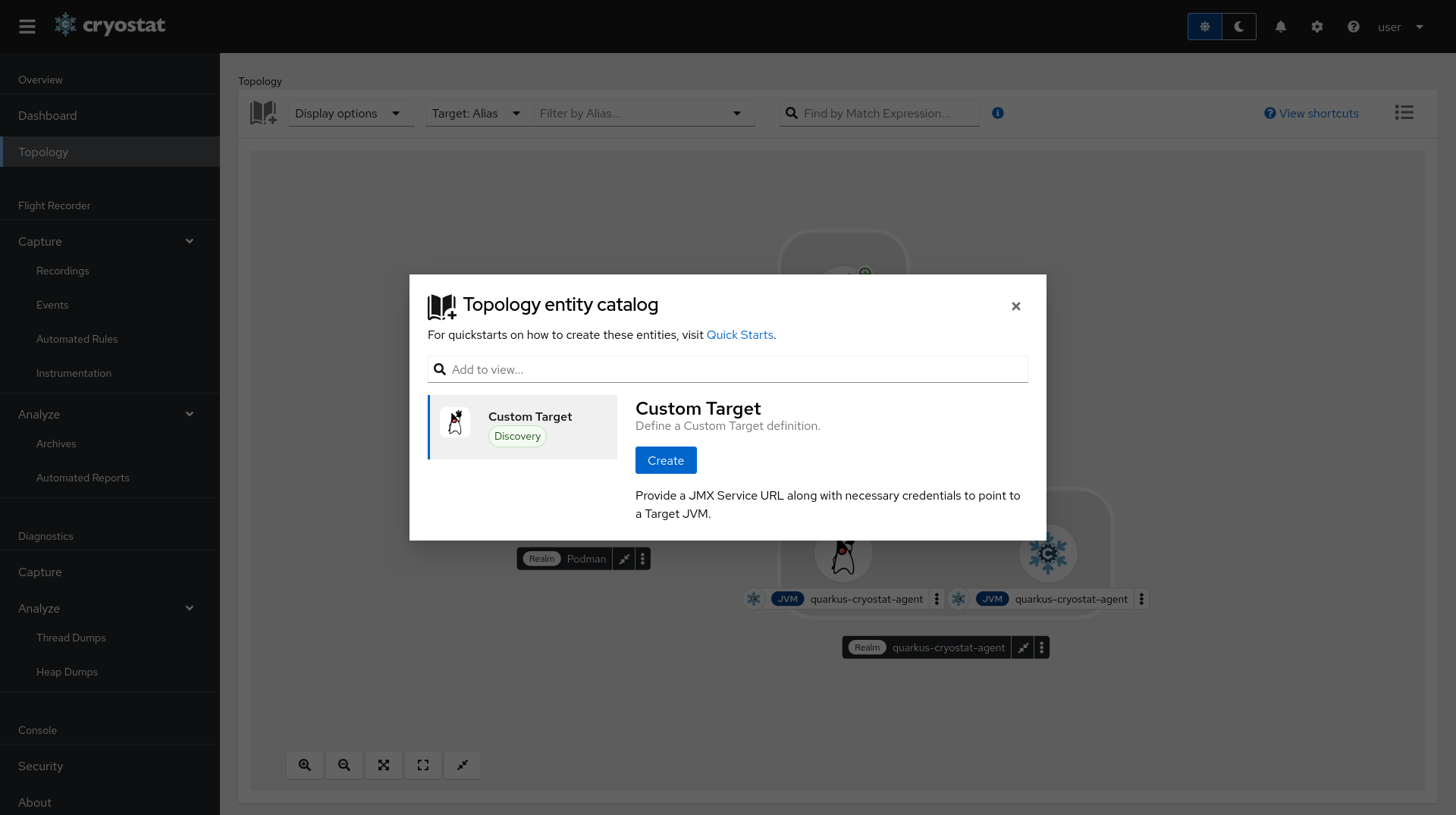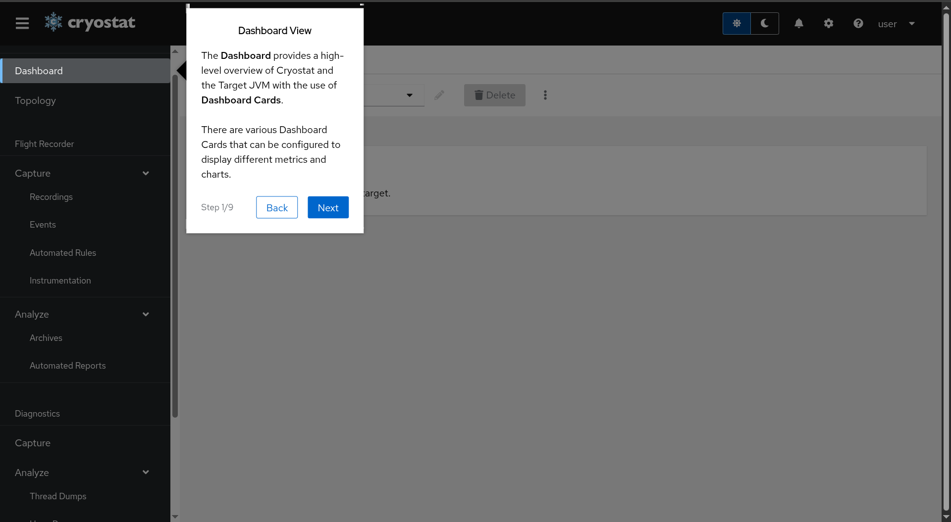 Welcome TourClick through the Welcome Tour to learn how to use Cryostat.